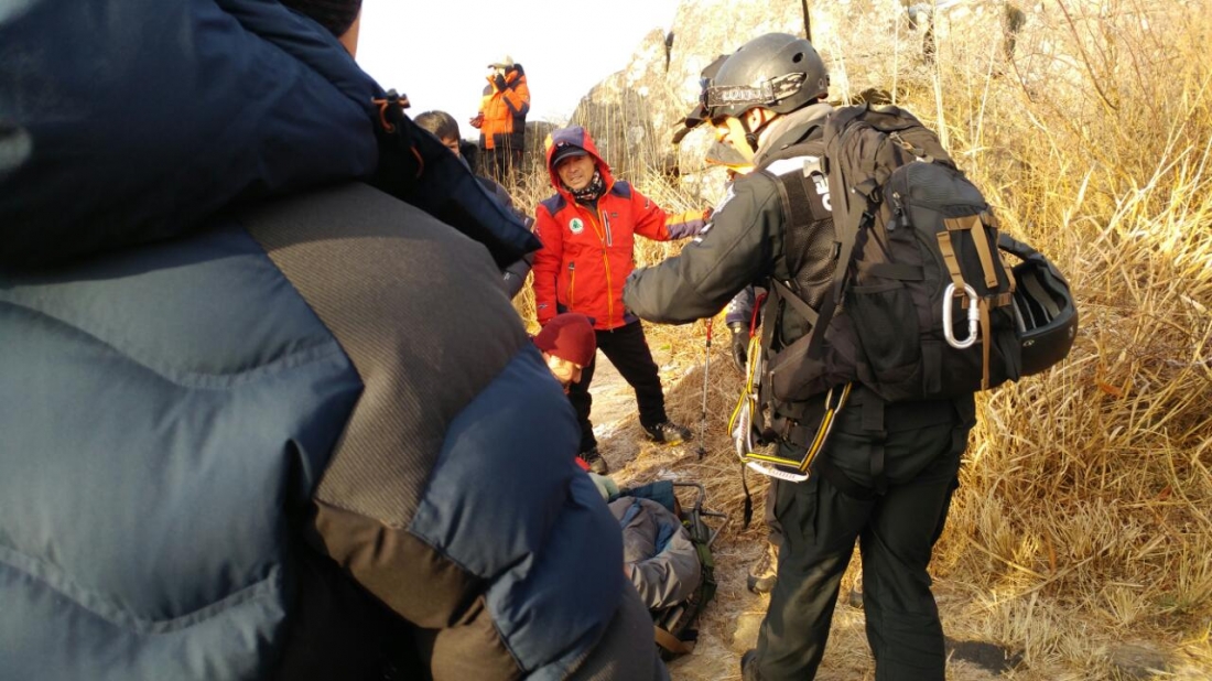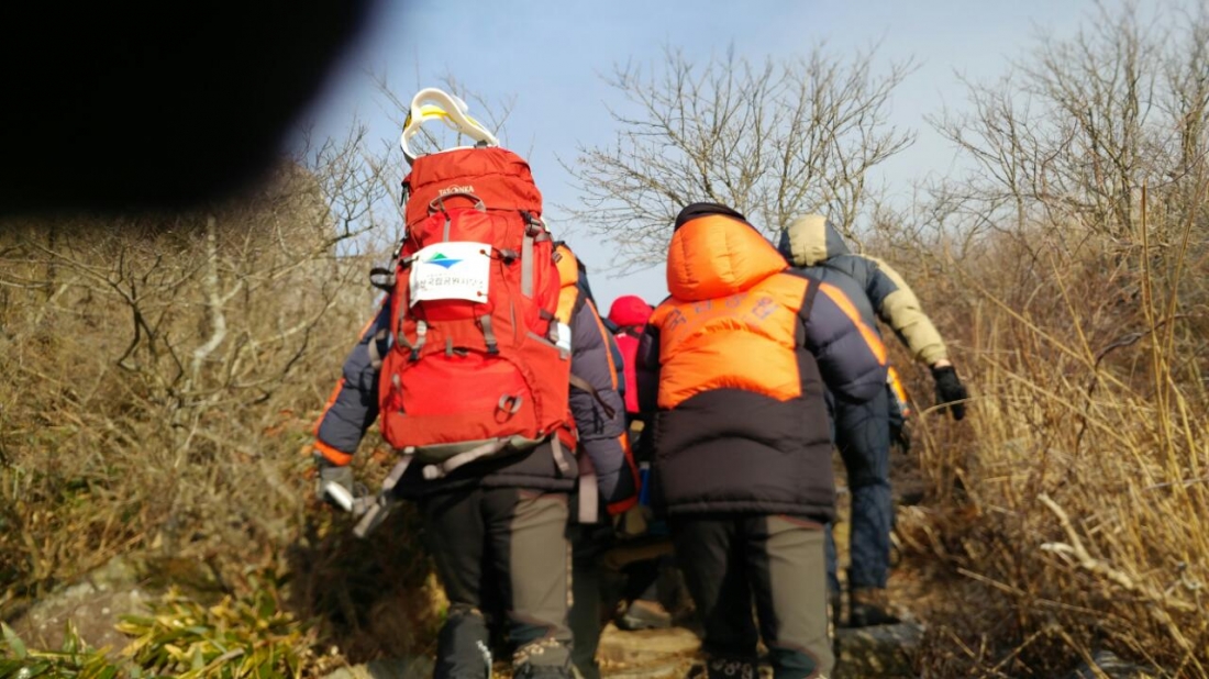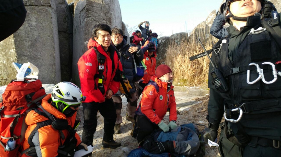 국공직원과 무등산산악구조대와 같이 환자처치후