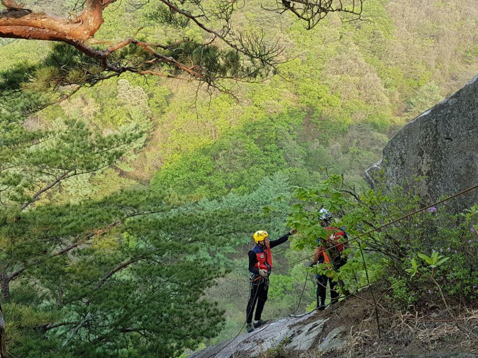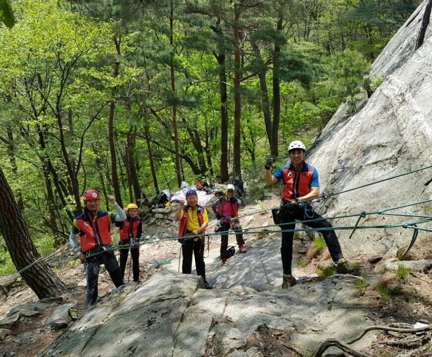 원주시 산악구조대 4월 정기훈련 및 백운산 상바위 안전정검 보수작업
