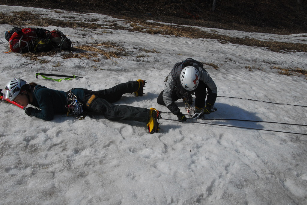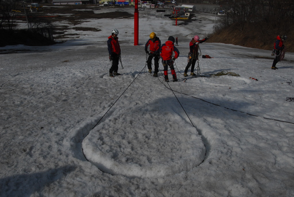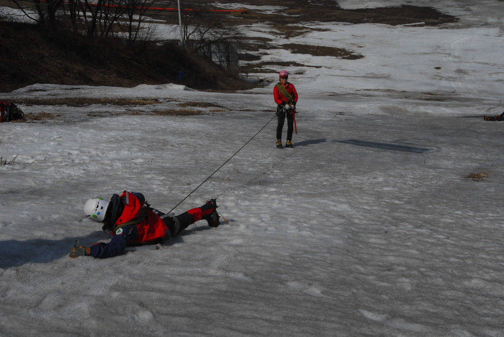 내 용 : 안자일렌(3인 1조, 2인 1조), 활락정지, 홀링시스템, 자가탈출, 응급처치, 하강(스노 볼라드)