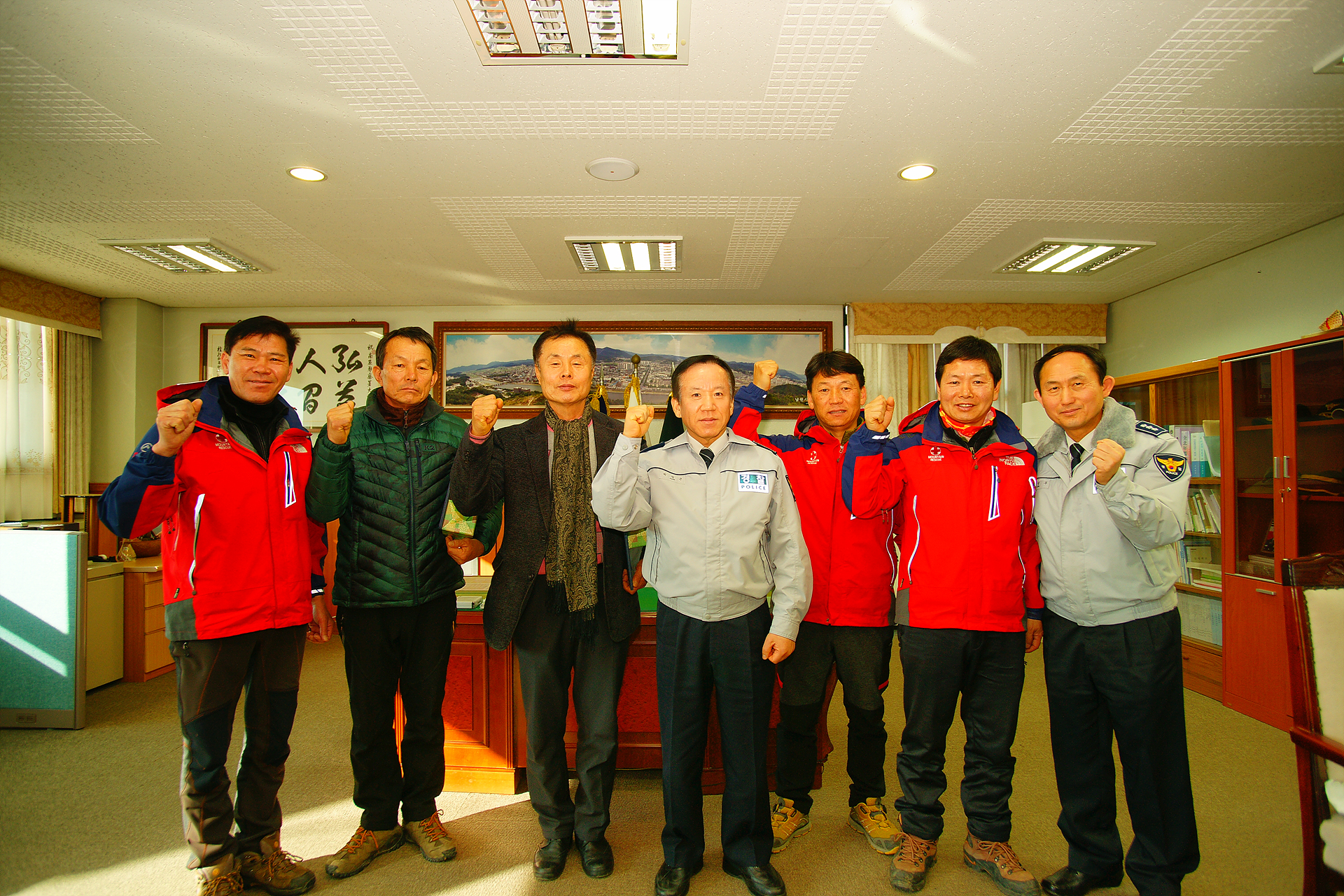 지리산 와운골 조난자 수색 5명구출 하고 경찰서장님으로부터 격려를 받았습니다.