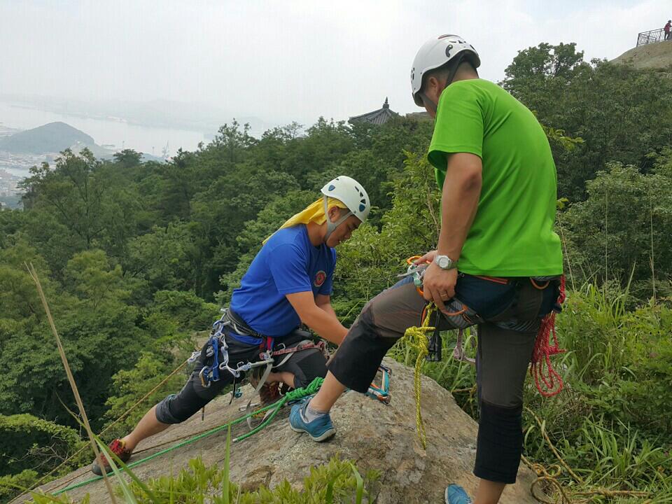 암벽지대 사고시 구조를 위한 수직구조등의 구조훈련