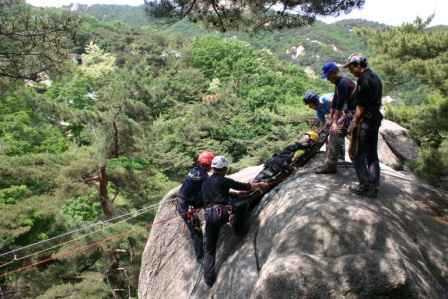 2010년 전국 산악구조대 대원들을 대상으로 교육을 실시하고 있다.