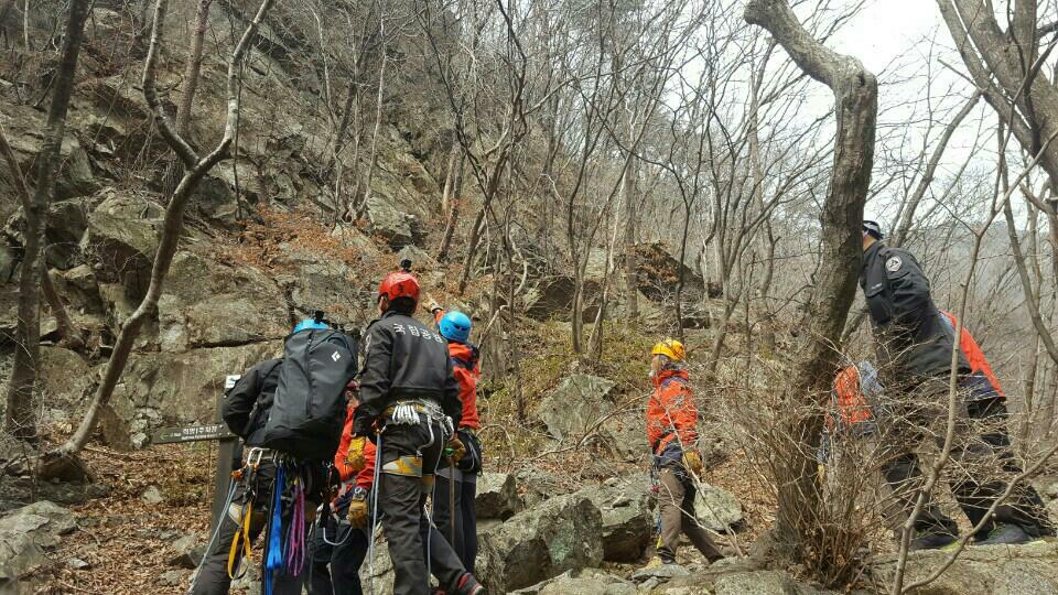 민관 해빙기 낙석예방 작업 실기 서울산악구조대