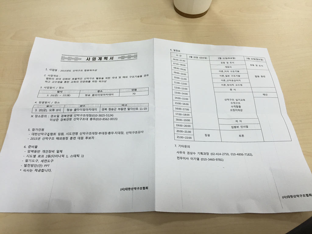 시 행 일 : 3월20일~22일(금~일) 대한산악구조협회 합동 워크샵